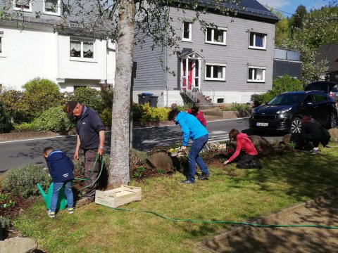 Tatkräftig mit Jung und Alt wurden auch dieses Jahr wieder frische Blumen gesetzt.