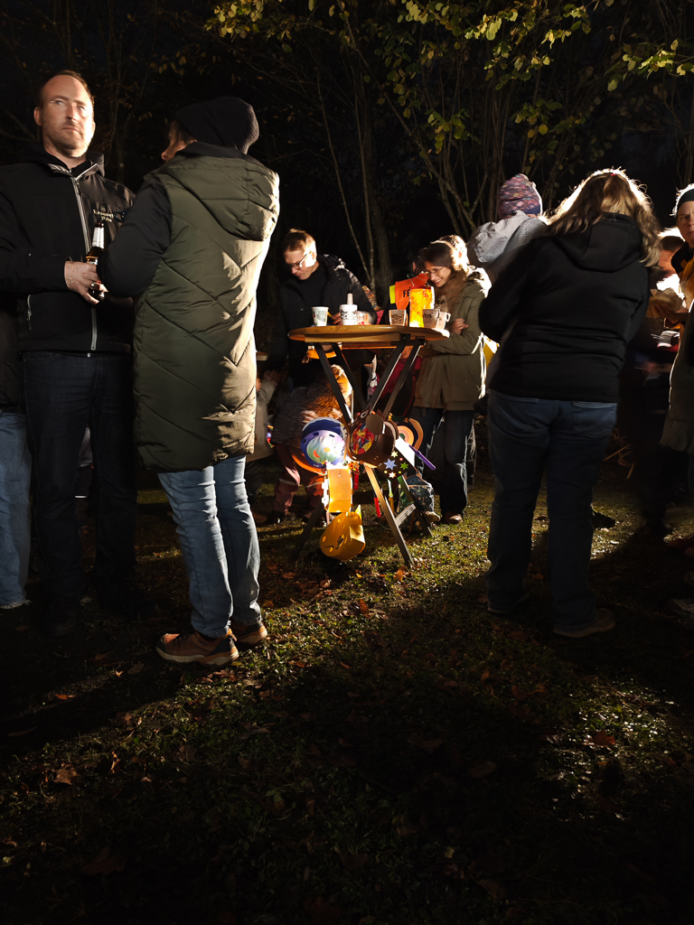 Der Heimatförderkreis Hengsbach e.V. beobachtet den wachsenden Zuspruch besonders am feierlichen Endpunkt des Umzugs: dem Gerätehaus am Himmelsseifen. Hier fand der Laternenlauf wie gewohnt seinen stimmungsvollen Abschluss. Die Stände wurden regelrecht gestürmt – die Nachfrage nach Martinsbrezeln, warmem Kakao und heißem Glühwein war enorm.